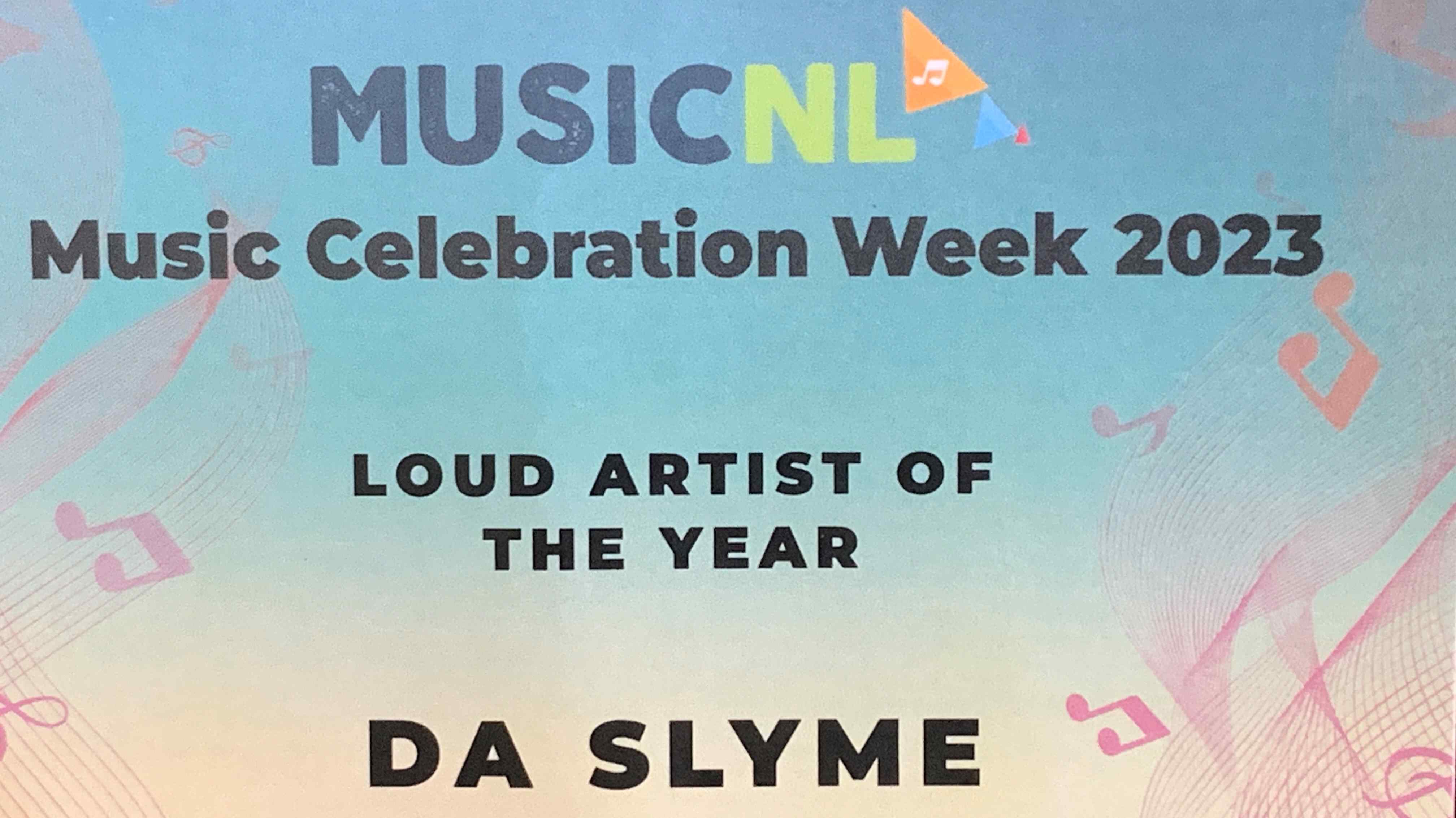 Da Slyme was named Loud Artist of the Year at the Music NL Awards Gala on October 21.
